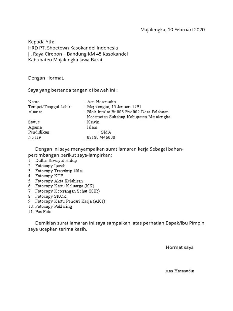 Contoh Surat Lamaran Kerja Di Pt Soetwon 10000 Contoh Surat Lamaran Kerja Yang Baik Benar Terlengkap Contoh Surat Lamaran Kerja Nike Terbaik Contoh Surat Lamaran Kerja Di Pt Kai Michelletrachtenbergppb from i2.wp.com 45, kasokandel, kabupaten majalengka, jawa barat 45453. Dengan surat ini saya bermaksud untuk mengajukan lamaran pekerjaan di perusahaan yang bapak/ibu pimpin, sebagai bahan pertimbangan bapak/ibu pimpinan saya lampirkan sebagai berikut : Berikut contoh surat lamaran kerja fresh graduateuntuk sma dan smk sehubungan dengan informasi dibukanya lowongan pekerjaan di pt. Info lowongan pekerjaan tak hanya tersedia di media cetak saja, tapi dengan datangnya. Di bawah ini ada beberapa contoh surat lamaran kerja untuk berbagai posisi. Pabrik perusahaan ini menghasilkan sepatu untuk target ekspor ke berbagai negara. Contoh surat lamaran kerja tanpa pengalaman kerja. Contoh surat lamaran kerja umum, bank, karyawan, alfamart, pt, sekolahan, formal, fresh graduate, bahasa inggris, via email, tulis surat lamaran kerja adalah surat yang digunakan untuk melakukan permohonan mendapatkan pekerjaan sesuai pengalaman pada perusahaan tertentu.